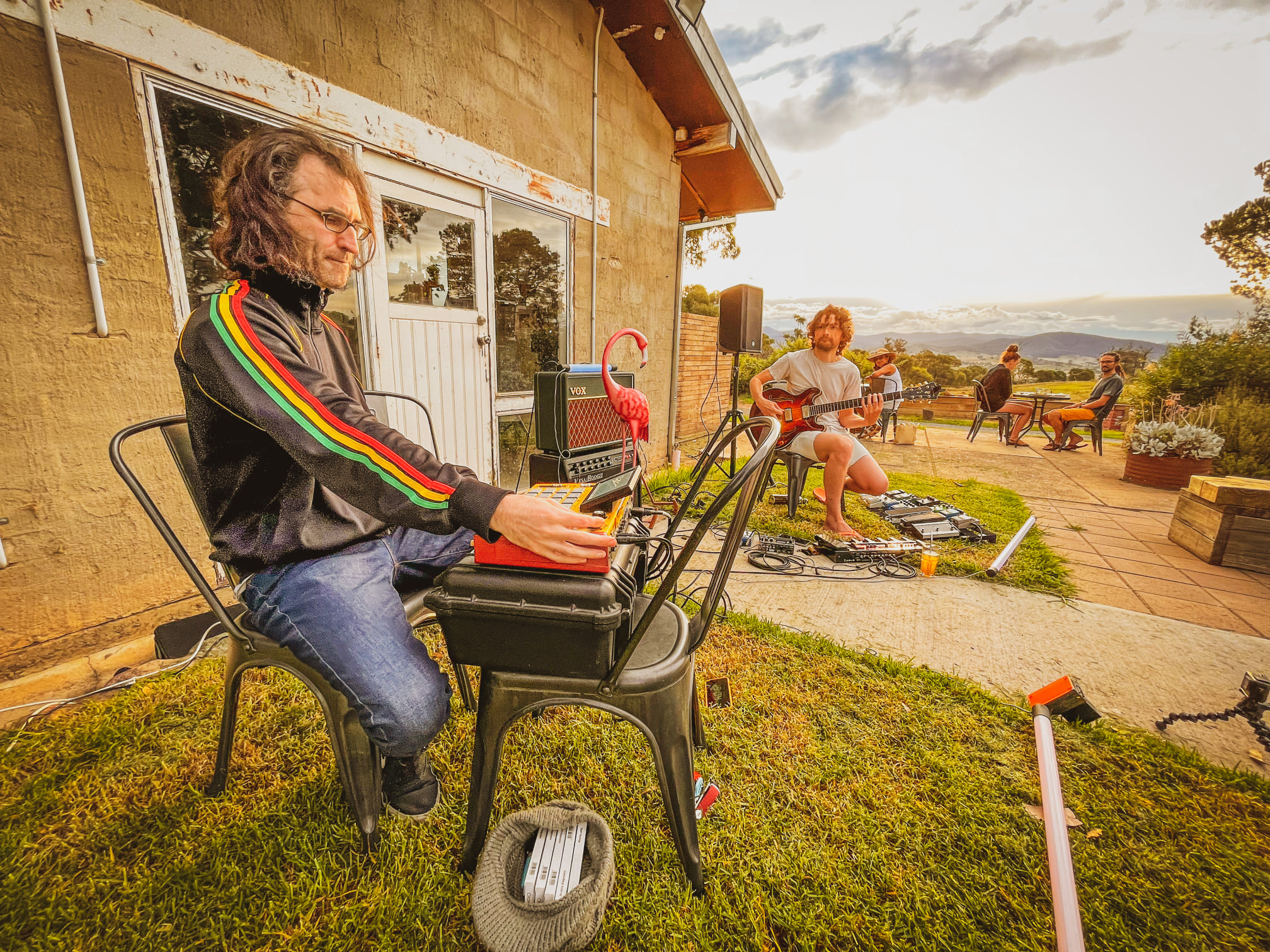 Sri Lustri is an offshoot of Shadow Ministers, led by guitarist/composer Matthew Lustri and backed up on Akai MPC1000 by producer/bassist/keyboardist 3oB. The duo were able to keep up musical momentum throughout the horror year of 2021 despite lock downs, cancelled shows, closing venues and general human malaise. Matthew’s own melodic inventions fly high utilising traditional Indian time signatures and scales, played on Western electric guitar. 3oB’s beats are inspired by dub, hiphop and drum n bass, while aiming to anchor such influences to these ancient patterns that shape every movement. Great for dancing, meditation or simple sonic enjoyment, Sri Lustri continue to interest listeners from Ginninderry to Belconnen, EPIC showgrounds, online live streams and live to air terrestrial radio shows.